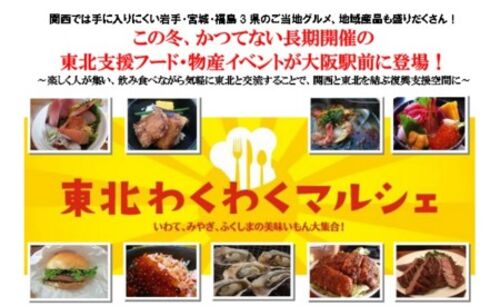 公益社団法人ソーシャル・サイエンス・ラボ*1では,12月13日より2月23日まで大阪駅前西梅田スクエアで巨大フードイベント「東北わくわくマルシェ」を開催します*2! かつてない足かけ三ヶ月の期間に,岩手・宮城・福島のお店・物産が大阪に大集合します! イ…